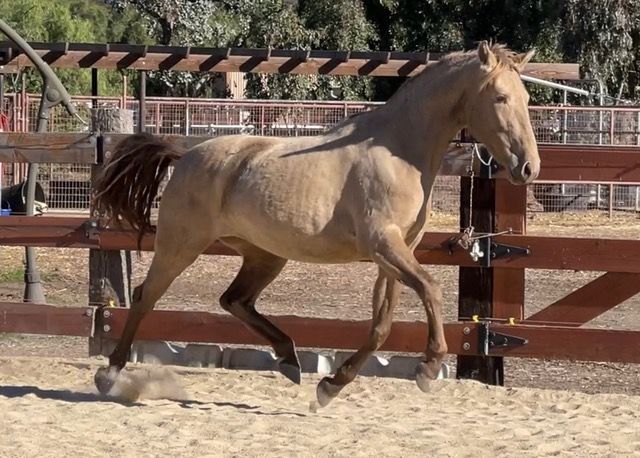 Upcoming stallions include the 2021 Perlino colt (gg Ee AA Cr Cr), Don Diego del Solis combining Bravio lines with Furtivo PM (17h Palomino stallion). Diego is looking like he will be an outstanding addition to our PRE stallions. His first foal is expected in May 2025. And he is standing to the public for the first time in 2025.