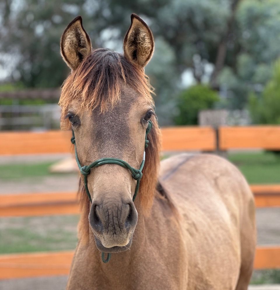 “Ambrose del Solis is freaking hilarious! He’s come out of his shell and has a BIG personality. He’s become friends with everyone. Even my big stallion who is super serious and macho has come around to playing with him over the fence. I count my lucky stars you chose me to be his forever home and have no doubt he left a hole at your farm. He makes us laugh at every turn. We let him roam free in the barn while we clean in the mornings so he feels he owns the place now. He doesn’t need any help with his confidence!"