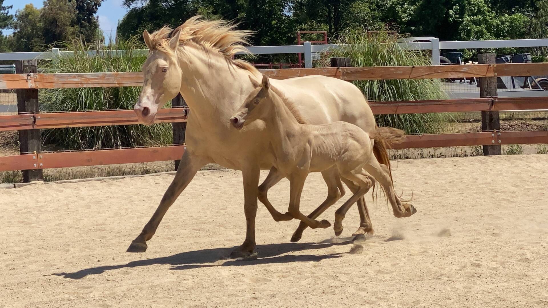 It was a long term project, but we finally have our homozygous pearl stud colt to carry on the Bravio dynasty. His name is APOLLO DEL SOLIS and he was available for his first breedings in spring of 2020. His first foals arrived 2021 and are proving to be truly exceptional; sharing their sire's unique color genes with athletic prowess, and an extraordinary temperament.
