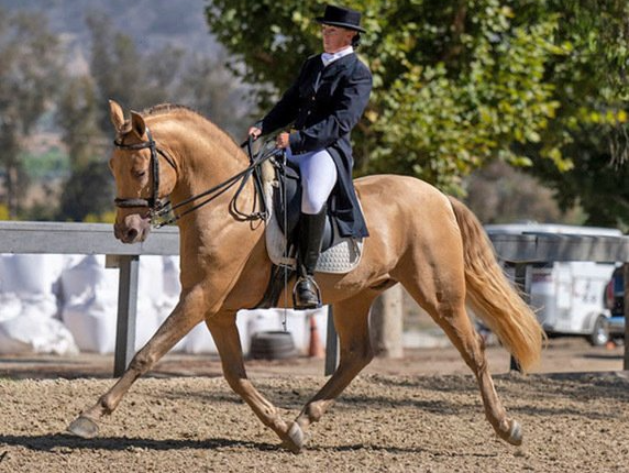 This young stallion is NOT of Paco Marti breeding... making him the perfect choice for the many PM cream and pearl horses located in the United States. "Oro" as he was known to his friends, demonstrated the potential for high levels of dressage and had exceptional conformation. This stunning horse of pure spun gold currently stood approx. 16.3h tall. He is great grandsired by the famous Grand Prix Dressage horse, Gaucho III and out of a Lastur daughter, Vega X.