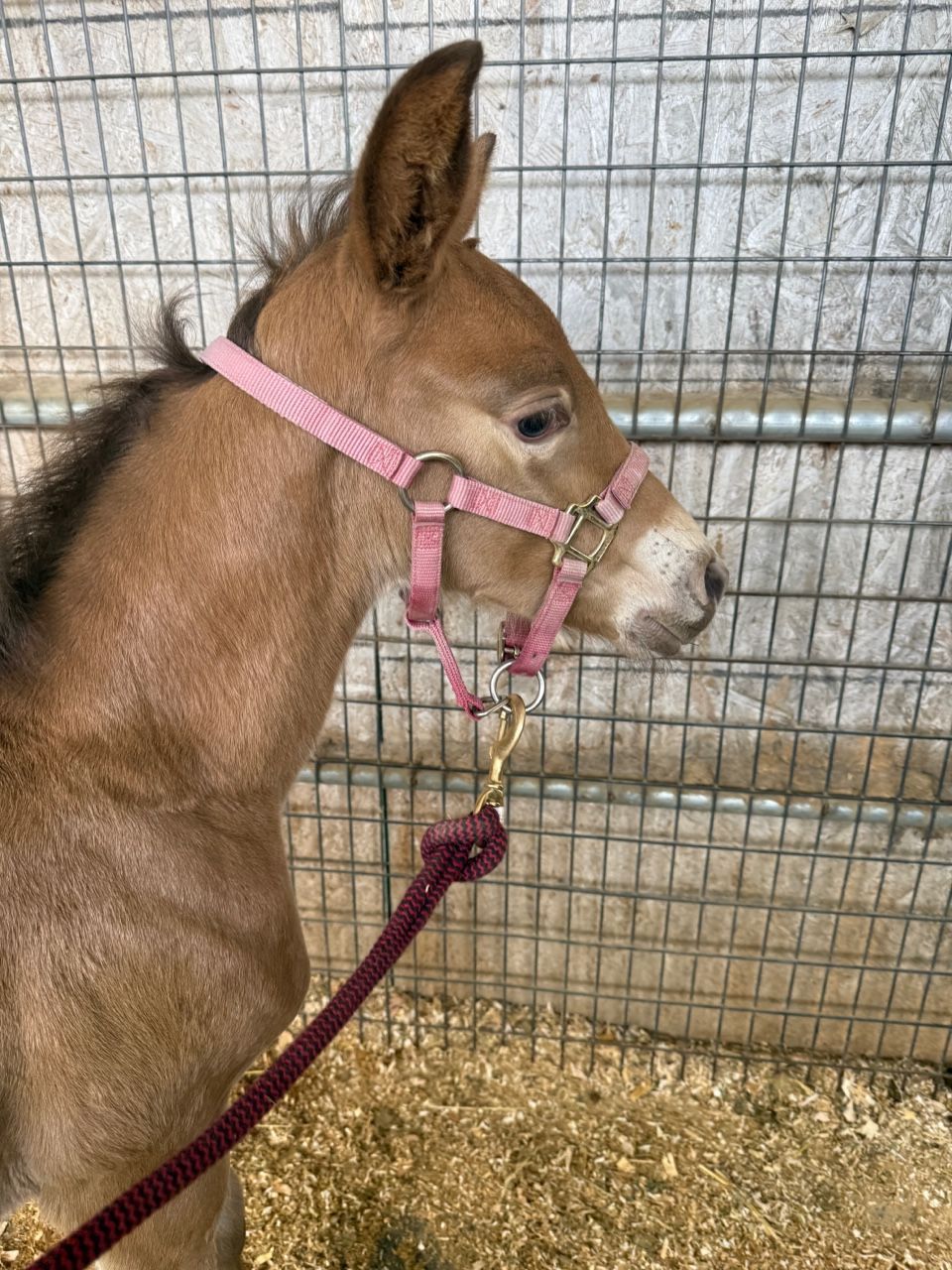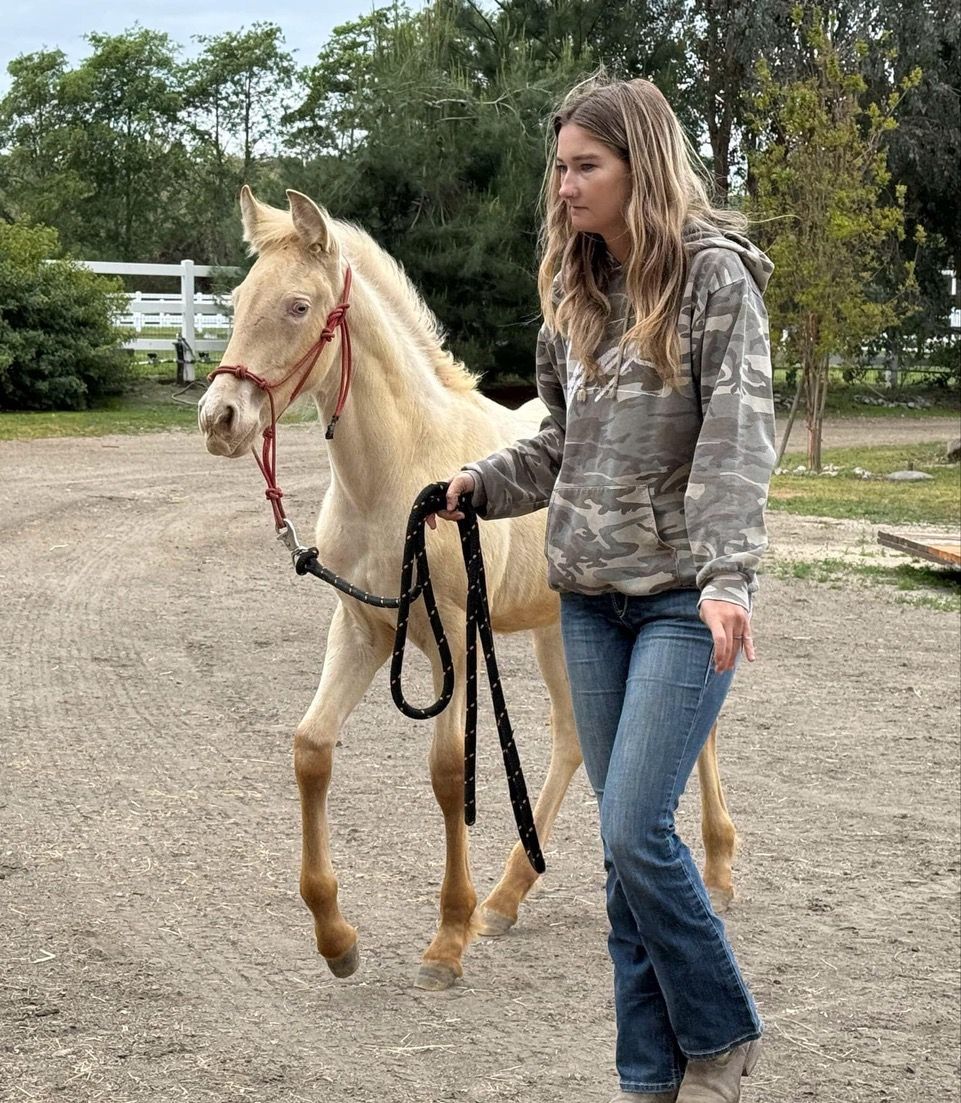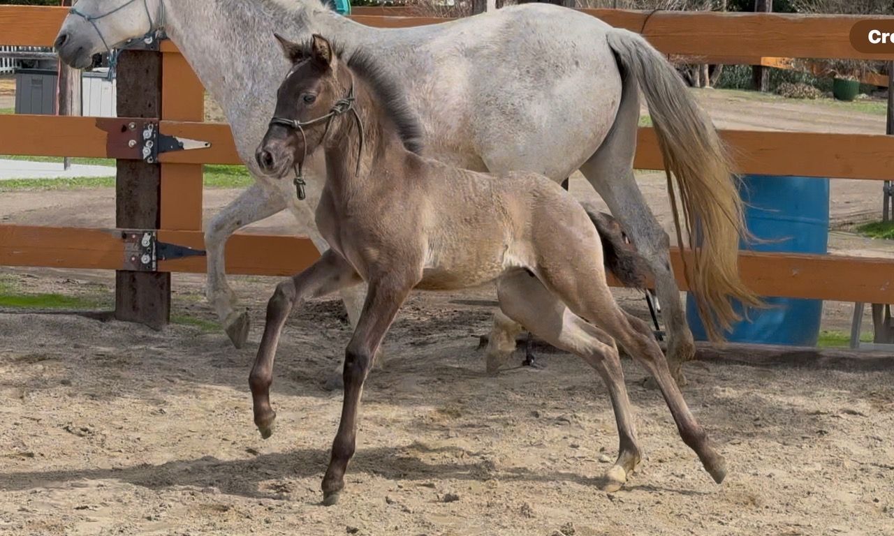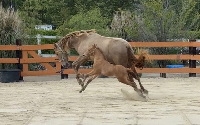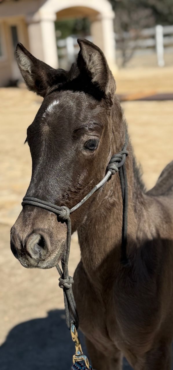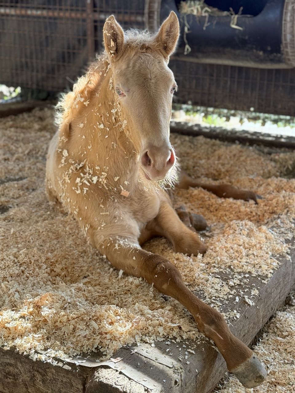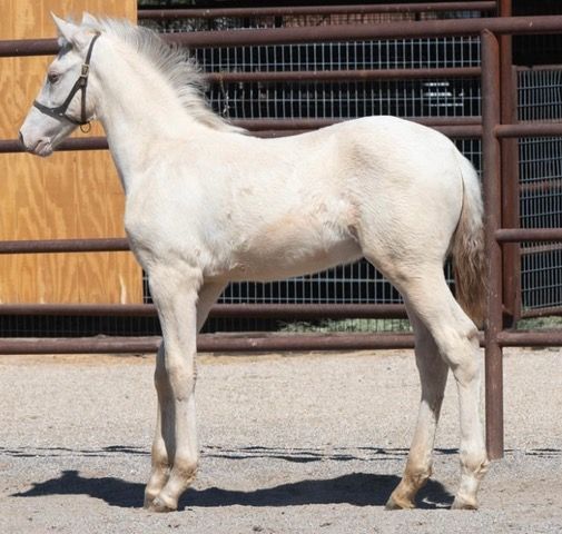 Arrived April 2025, this double Pearl colt has movement that blew our socks off! Very forward from his first day out.