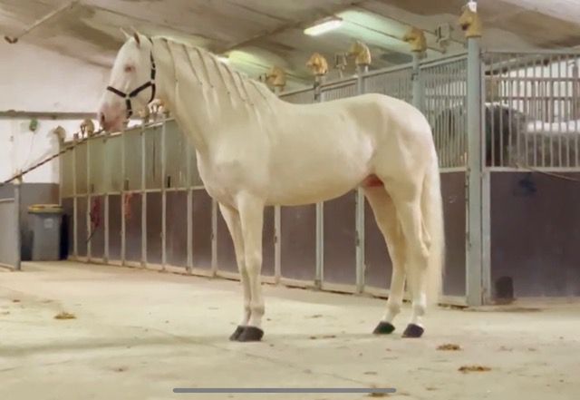 This boy has presence, nice conformation, movement and will be tall like his 17 hand sire. Altivo Vinyet-the sire- is a Cremello Altivo who is a dressage star. Diva is a sweet and beautiful baroque Cremello mare. UC Davis color tested as AAeeCrCr no grey. Located in So. CA.