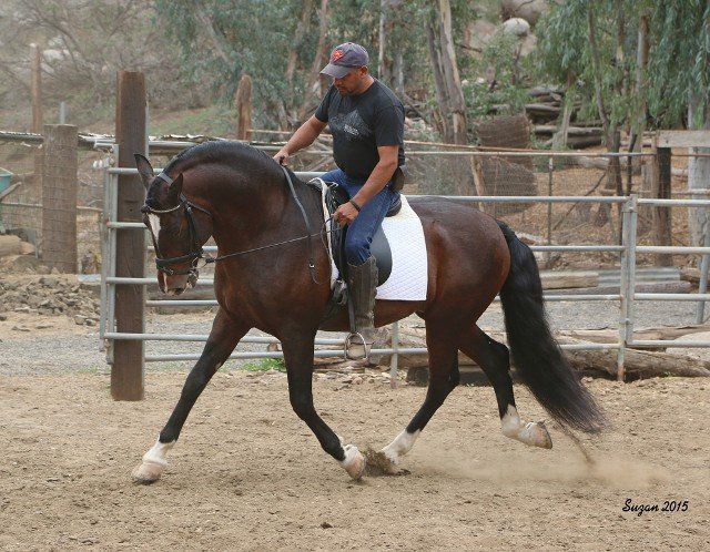 Brilliant bay Andalusian stallion sired by Del Amor de Amigos (black PRE stallion) and out of a Galileo daughter, Contessa de Galileo. Described as a gentle stallion. Well trained under saddle. Outstanding horse for exhibitions, parades, show ring and so much more. Approx. 16h. Video link available. Email SommerRanch@gmail.com for more information.